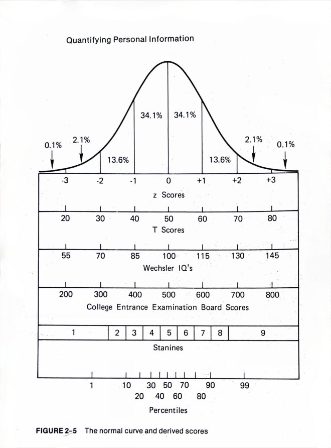 Mellan IQ (Intelligenskvot) 85 och 115 finns nästan 70% av västerländska befolkningar. Denna zon (egentligen två st) kallas normalzonen. Omkring IQ 70 och nedåt (ca 2% av befolkningen) brukar kräva insatser från samhället (intellektuellt funktionshinder), och över IQ 130 (också dryga 2%) är de människor som ofta har mycket lätt för sig på utbildningar och i arbete (om inte andra faktorer hindrar).